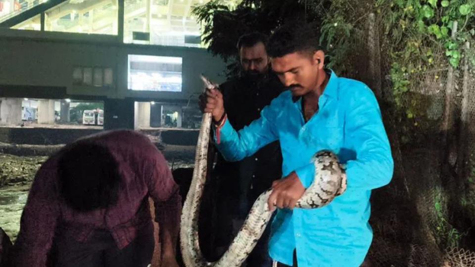 A traffic constable of Malakpet traffic police station, Venkatesh Nayak reached the spot and caught the snake identified as Indian Rock Python.