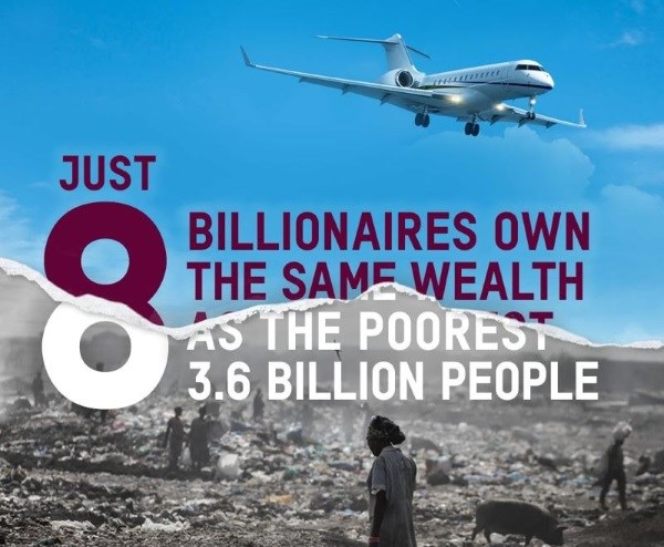"It is obscene for so much wealth to be held in the hands of just eight men – so few they would fit on a golf buggy – when one in nine people on this planet go to bed hungry every night," says Jim Clarken, Oxfam Ireland Chief Executive.